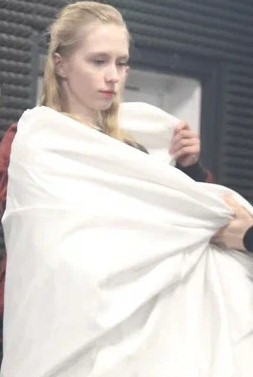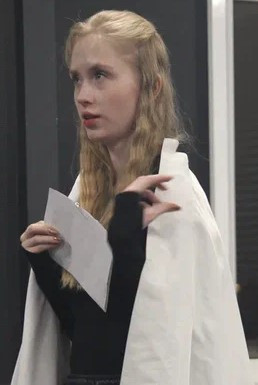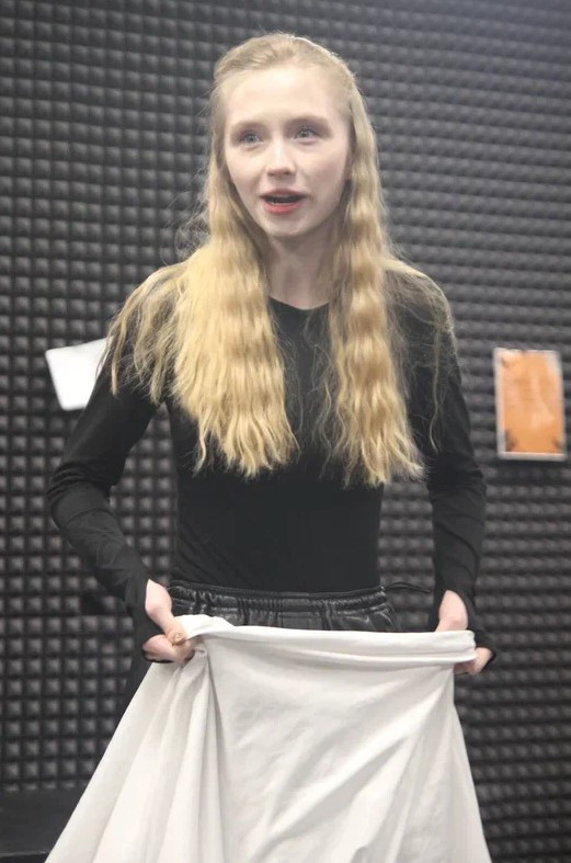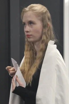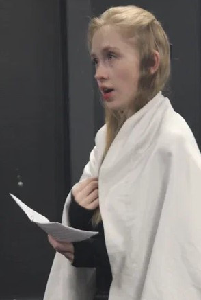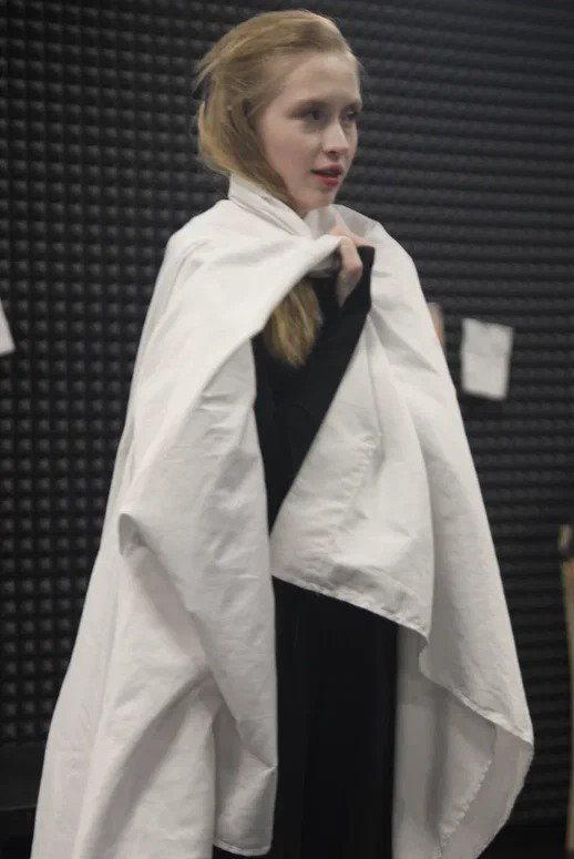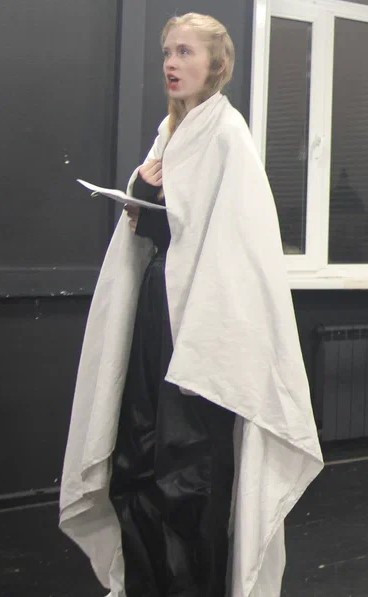 Мой номер на экзамене по актерскому мастерству был посвящен Жанне Д’Арк по пьесе “Жаворонок” Жана Ануя. Я читала ее монолог перед сожжением на костре и последнее слово в адрес врагов, палачей и общества в целом. Выступала постановщиком номера и помогала режиссеру.